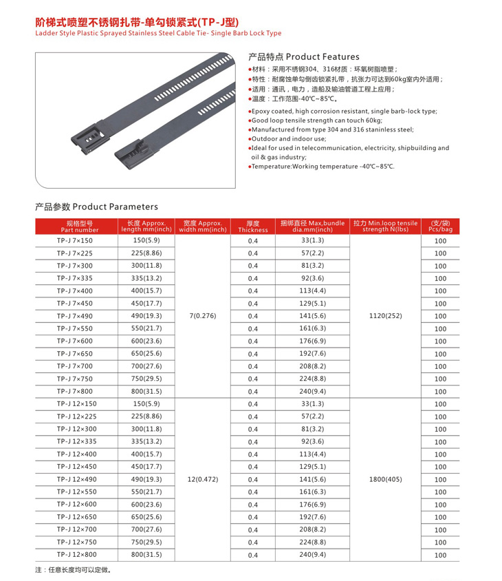 Ladde Type Plastic Sprayed Stainless Steel Cable Tie-Multi Lock Type